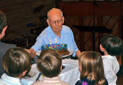 Francis Stroup, DeKalb, Ill., who wrote the UNT fight song “Fight, North Texas,” celebrated his 100th birthday in September. Attending the party were family from California, Minnesota, Wisconsin, Pennsylvania and Vermont, including seven great-grandchildren.