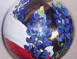 Jo Williams, Denton, executive director of the Visual Arts Society of Texas, created an ornament selected for display on the White House Christmas tree in December and highlighted on Good Morning, America in an interview with Laura Bush. Representing the 26th Congressional District, the 9-inch glass ornament featured a Texas flag, bluebonnets and an armadillo. Jo studied with the late watercolorist and art professor Rob Erdle and curated his memorial exhibit, “Water/Color.”