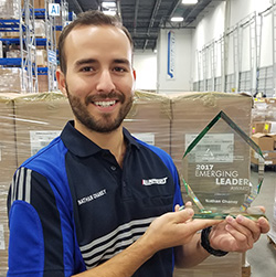 Nathan Chaney, Lewisville received the Council of Supply Chain Management Professionals’ (CSCMP) annual Young Professionals Emerging Leader Award. While at UNT, he worked with CEVA Logistics, a leader in freight management, and PepsiCo. Soon after, he started his career as a sales support specialist with Crane Worldwide Logistics. He was later promoted and has been an operations specialist for Mainfreight for the past three years.
