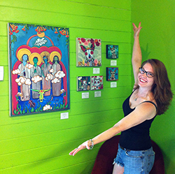 Robin Arthur, San Antonio creates custom pet portraits through her company, RobiniArt. They are inspired by the colors and symbols of Mexico’s Day of the Dead holiday. She worked with the nonprofit San Anto Cultural Arts to create a mural of the mythical Texas jackalope (jack rabbit with antlers) to be featured on the exterior of a San Antonio business.