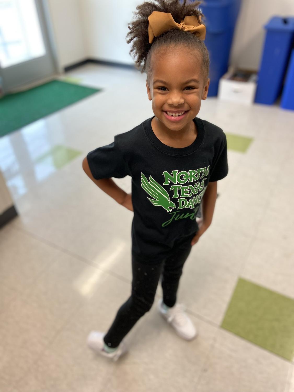 Sophilia McTyre (’09), Denton, assistant director for the TRIO Talent Search, is the proud mother of Morgan McTyre, 5 — class of 2038 — who participated in a clinic with the North Texas Dancers and performed the routine at a men’s basketball game in February.