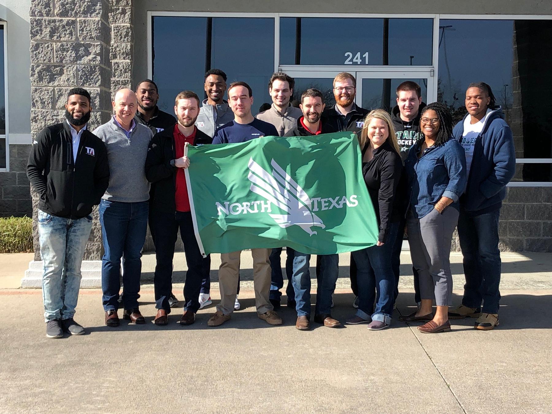 Out of its 27 employees TA Services, a steel trucking transportation company, boasts 14 UNT alumni-- so naturally the business flies the UNT flag at its corporate headquarters in Mansfield. Their alumni include logistics coordinator Nicole "Nikki" Jackson ('08), who took the photos.
